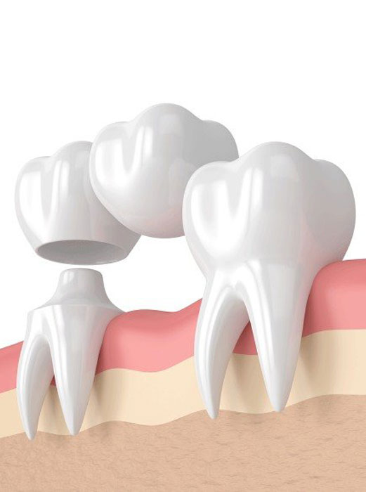 Dental bridges are custom-made restorations that consist of a prosthetic tooth (or teeth) anchored to neighbouring natural teeth or dental implants. This bridge "bridges" the gap, restoring not only the appearance of the smile but also the functionality of the teeth.